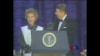 美国人喜欢幽默睿智的领导人。自乔治•华盛顿以来,很多美国总统秉承这一特点,或是自嘲一下自己的外形特点,或是以风趣地回答令人尴尬的问题,留下许多幽默的小故事,令人回味无穷。